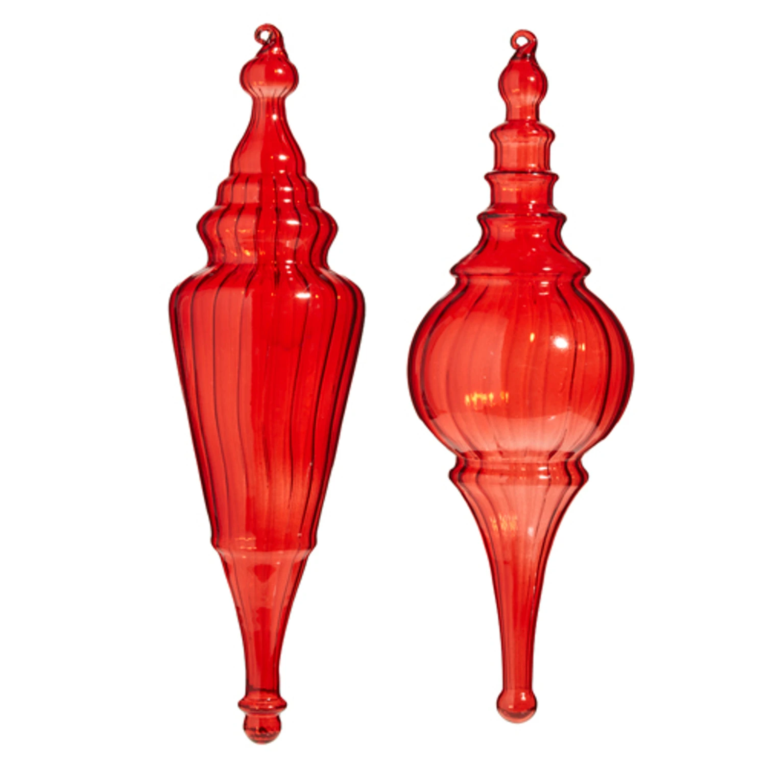 These stunning finials are large and in charge! Each one is made of bright red glass and is sure to look amazing on your tree with their unique finial shapes! Each sold individually OR as a set of 2. Each sold individually OR as a set of 2. Made by Raz Imports. Made of glass. Dimensions: 15.5″ tall. Item #: 4324500