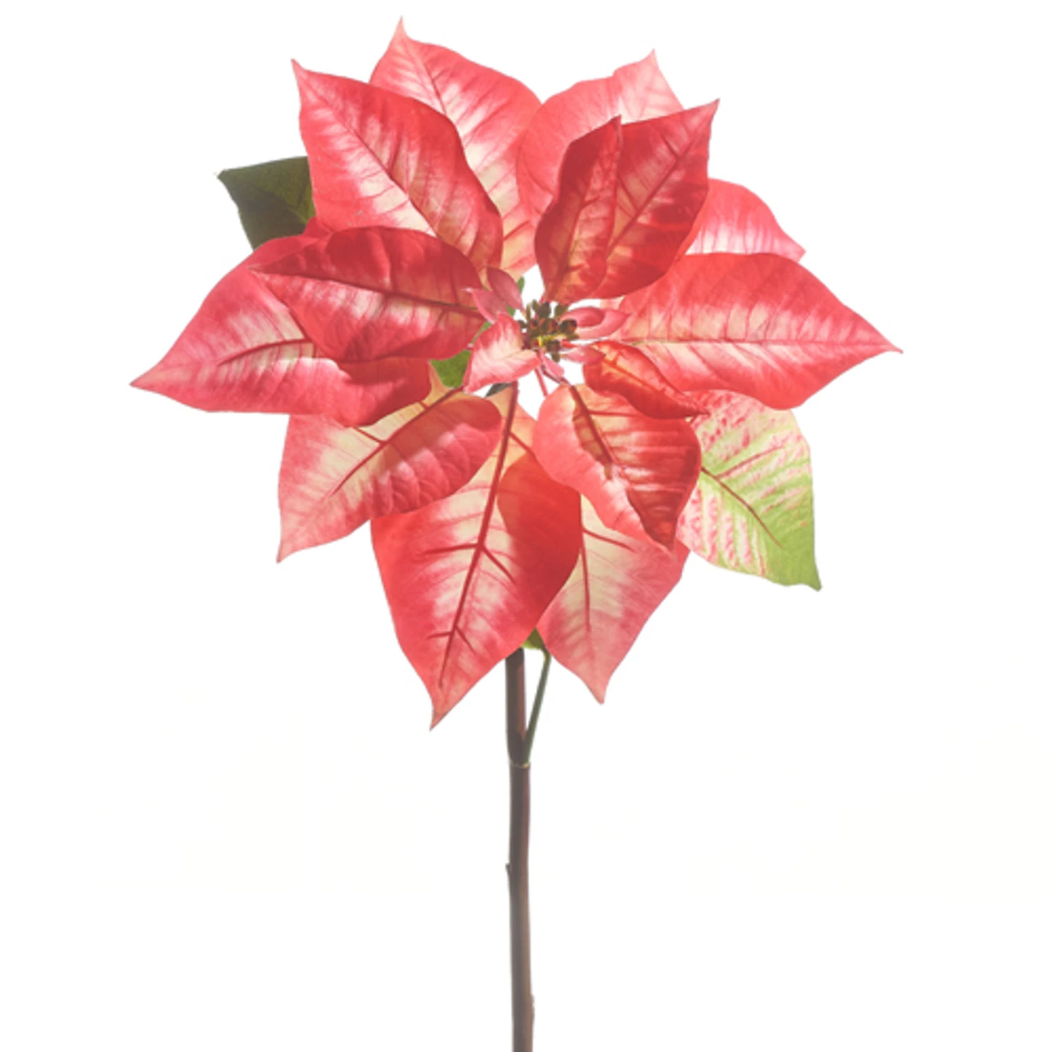 Decorate your tree with a few of these gorgeous poinsettias! It is made up of pink, red, and white leaves and a few green leaves for accent! Made by Raz Imports. Made of polyester. Dimensions: 24.5″. Item #: F4341706